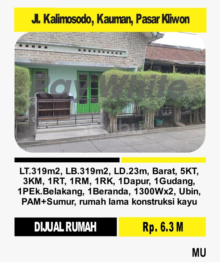 Di Jual Rumah Di Jl. Kalimosodo, Kauman, Pasar Kliwon