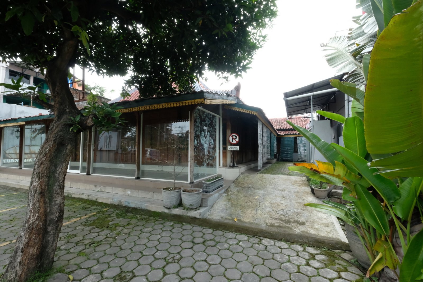 Lokasi Kawasan Pabrik Batik Keris dan PT. Dan Liris, Kawasan ramai penduduk. akses jalan lebar simpangan, area parkir luas. konsep joglo