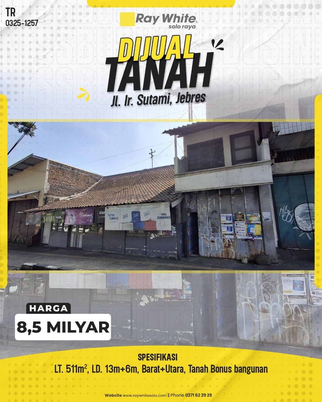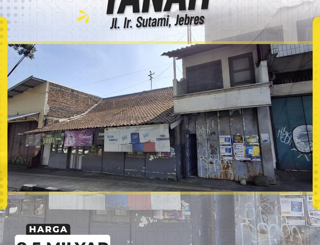 Dijual Tanah Bonus Bangunan di Jl. Ir Sutami, Jebres, Solo