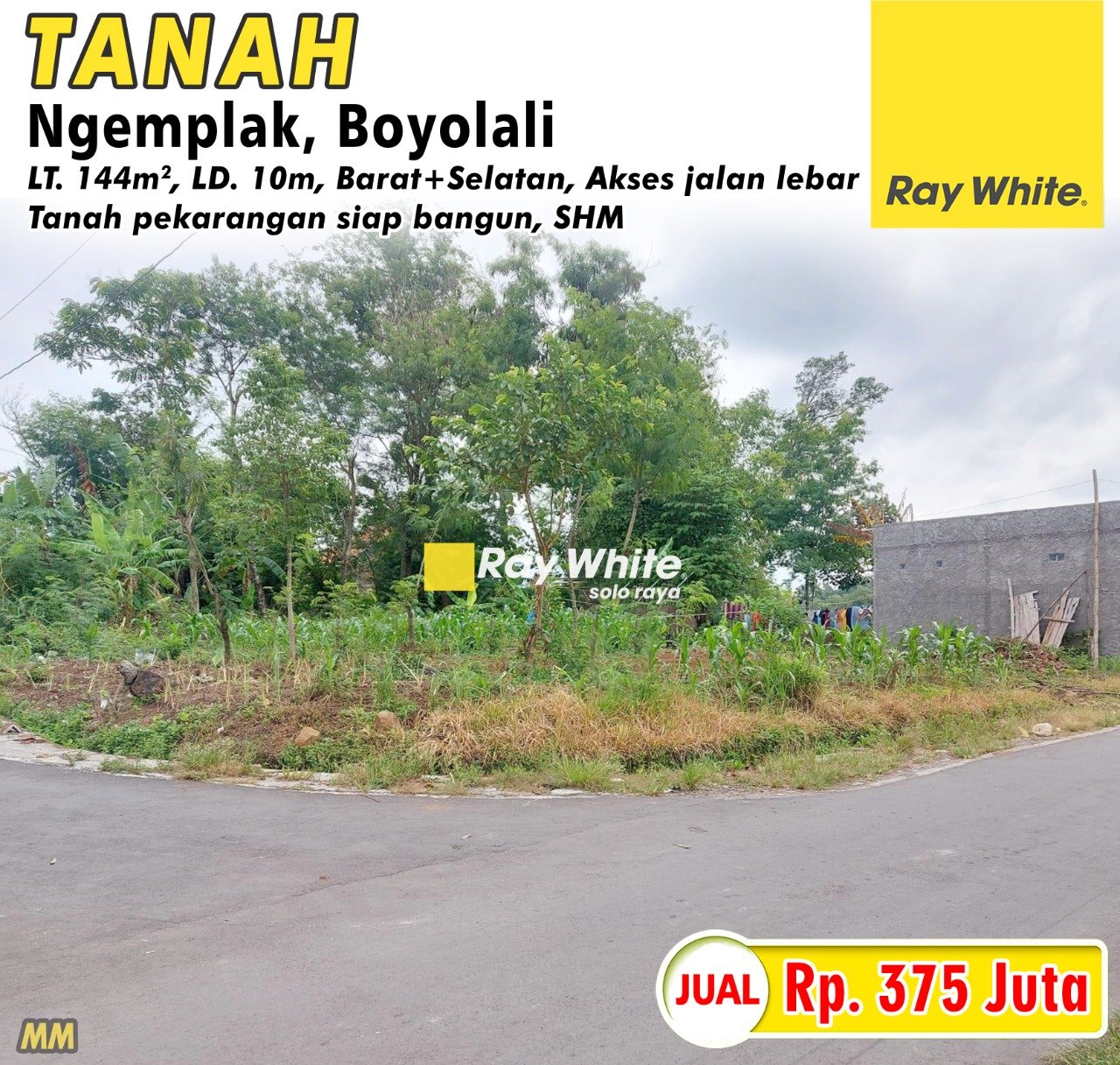 LT.144m2, LD.10m, Barat+Selatan, Akses simpangan, Tanah pekarangan siap bangun, Cocok untuk dibangun rumah tinggal