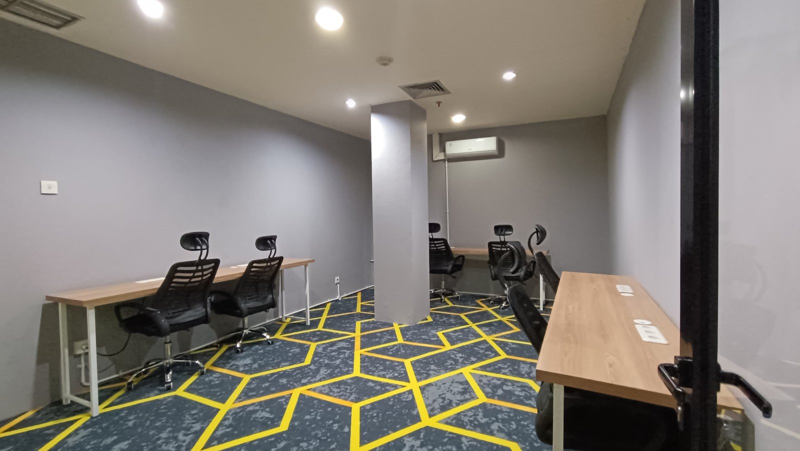 Ruang kerja modern dan nyaman, cocok untuk kebutuhan individu atau tim kecil. Lokasi strategis di pusat kota, dekat dengan fasilitas umum dan akses transportasi mudah. Cocok untuk aktivitas bisnis, kreatif, atau coworking.