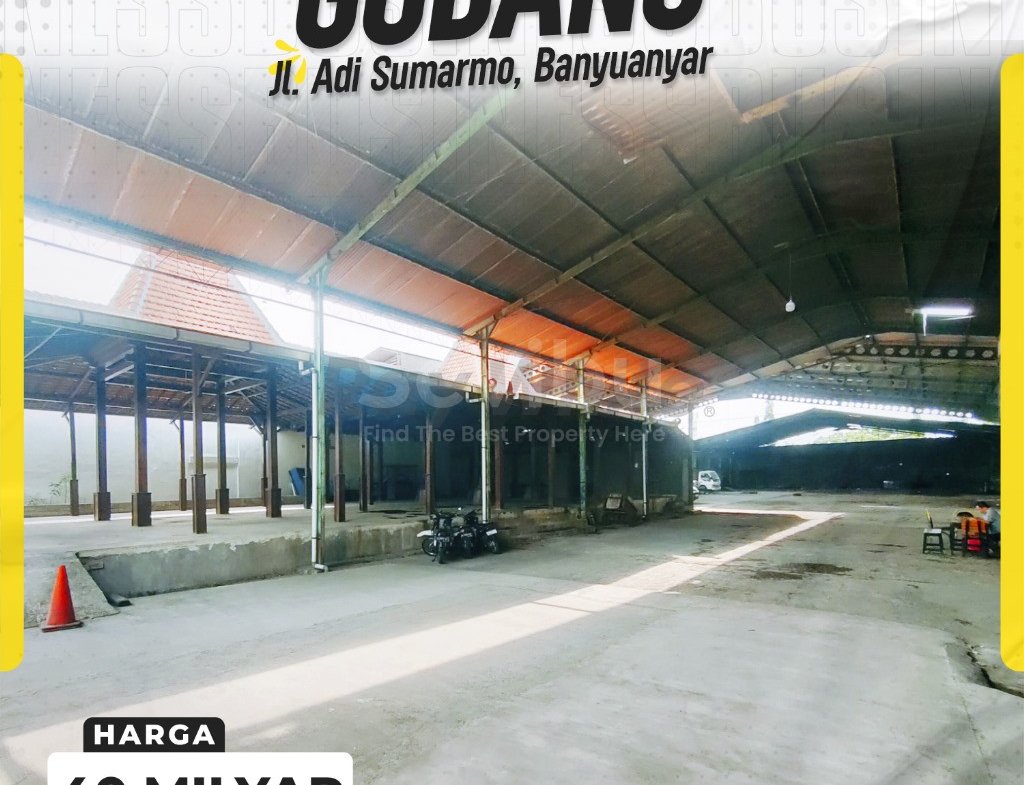 Sebuah penawaran aset komersial-industrial yang sangat langka dan paling strategis di gerbang utama Kota Surakarta. Dijual sebuah kompleks gudang/depo di atas lahan super masif seluas 4179 m², berlokasi di Jalan Adi Sumarmo, Banyuanyar. Dengan fasad lebar 28 meter di jalur VVIP menuju bandara dan pintu tol, properti ini menawarkan fondasi yang tak tertandingi untuk pusat distribusi, depo kendaraan skala besar, atau kantor pusat korporasi yang membutuhkan skala, prestise, dan aksesibilitas maksimal.