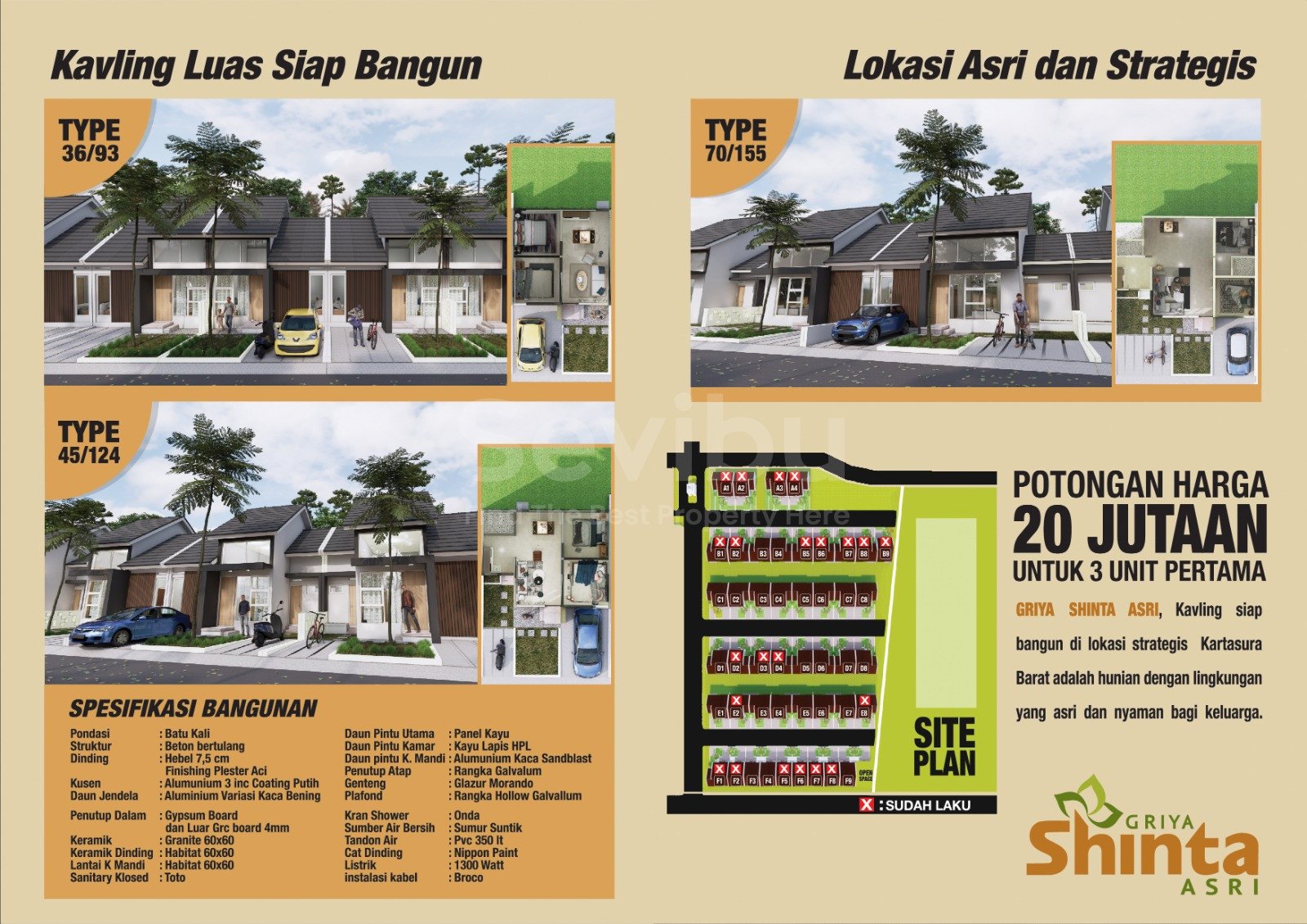 Hunian Cluster Modern Tanah Luas di Griya Shinta Asri Kartasura ( ADA BEBERAPA TYPE ) :