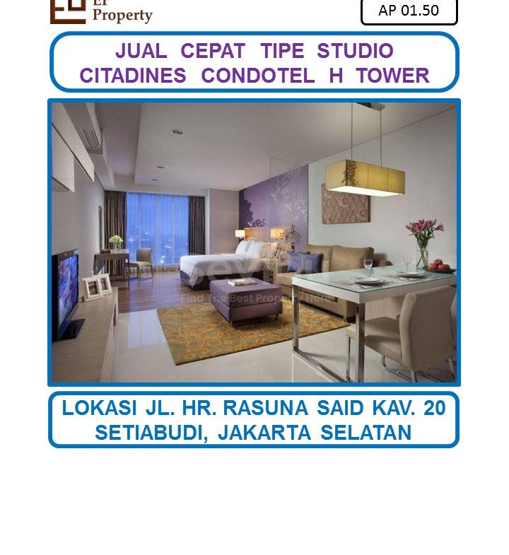 Jual Cepat Citadines Condotel H Tower Tipe Studio Full Furnished, Kuningan, Jakarta Selatan..