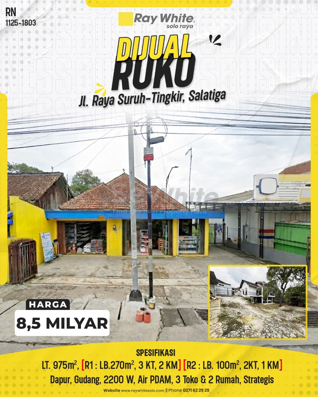 Ruko Strategis dengan Lahan Luas (975m²) dan Bangunan Pendukung di Tepi Jalan Raya Suruh-Tingkir, Salatiga