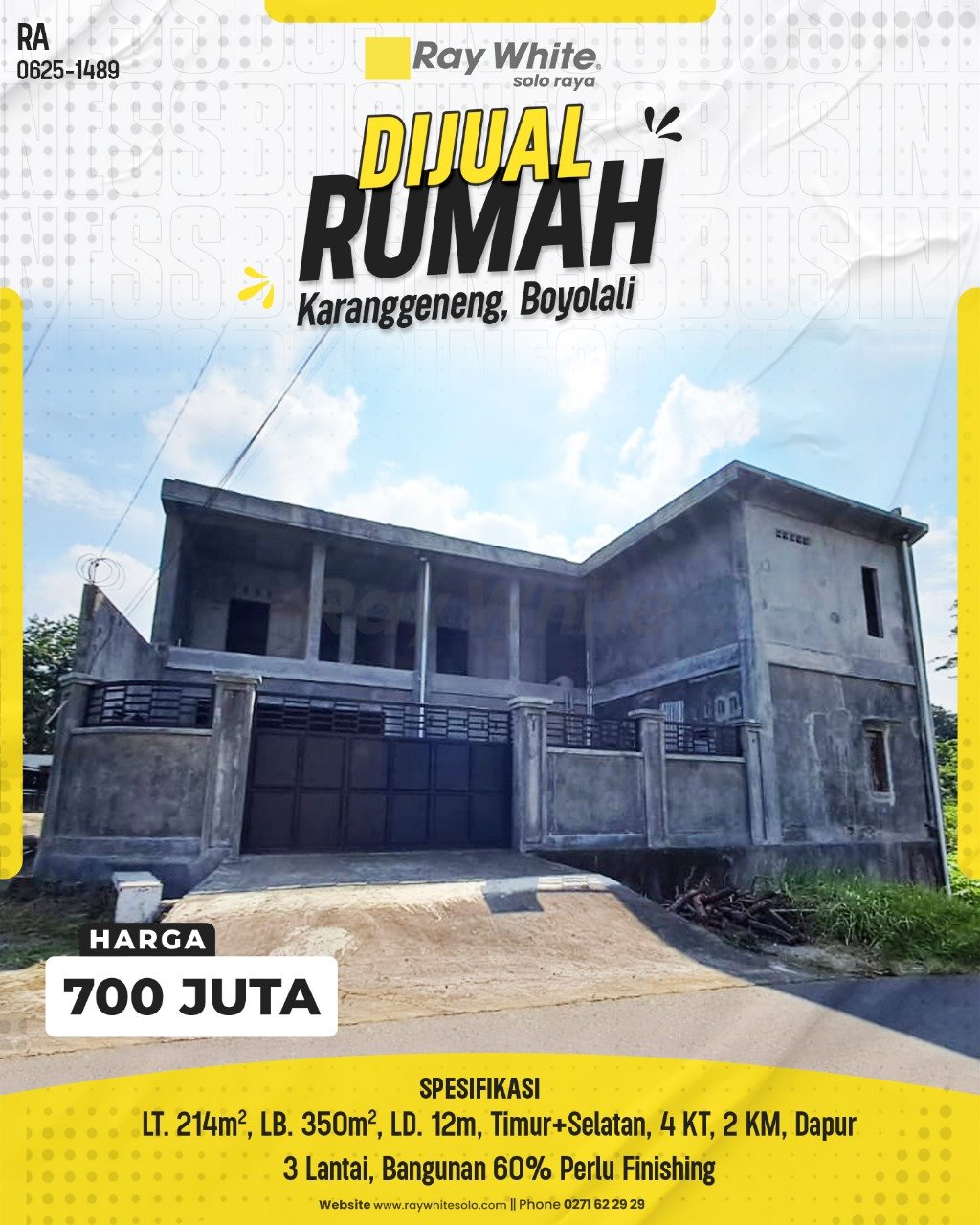 - Kondisi: Bangunan 60% Perlu Finishing