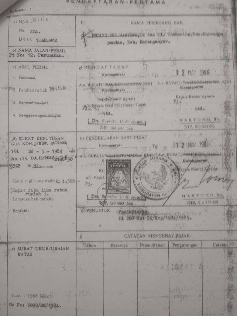 - Luas Tanah 1966 m²