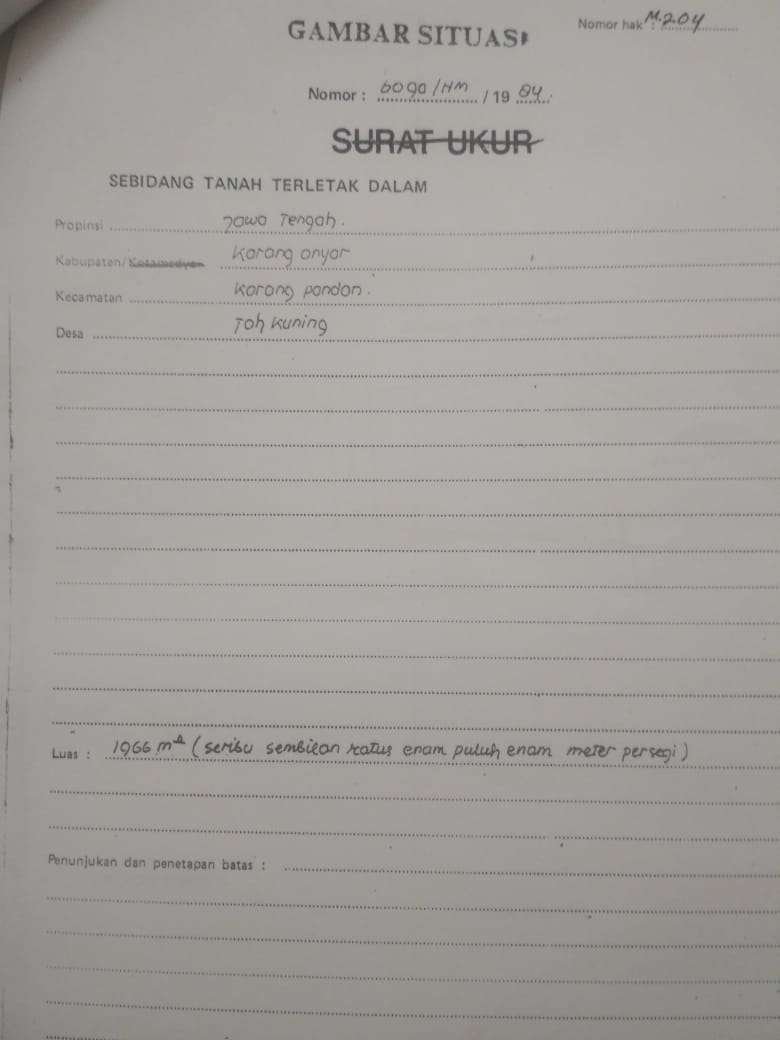 Tanah dijual di Tohkuning Karangpandan Karanganyar zona kuning perumahan