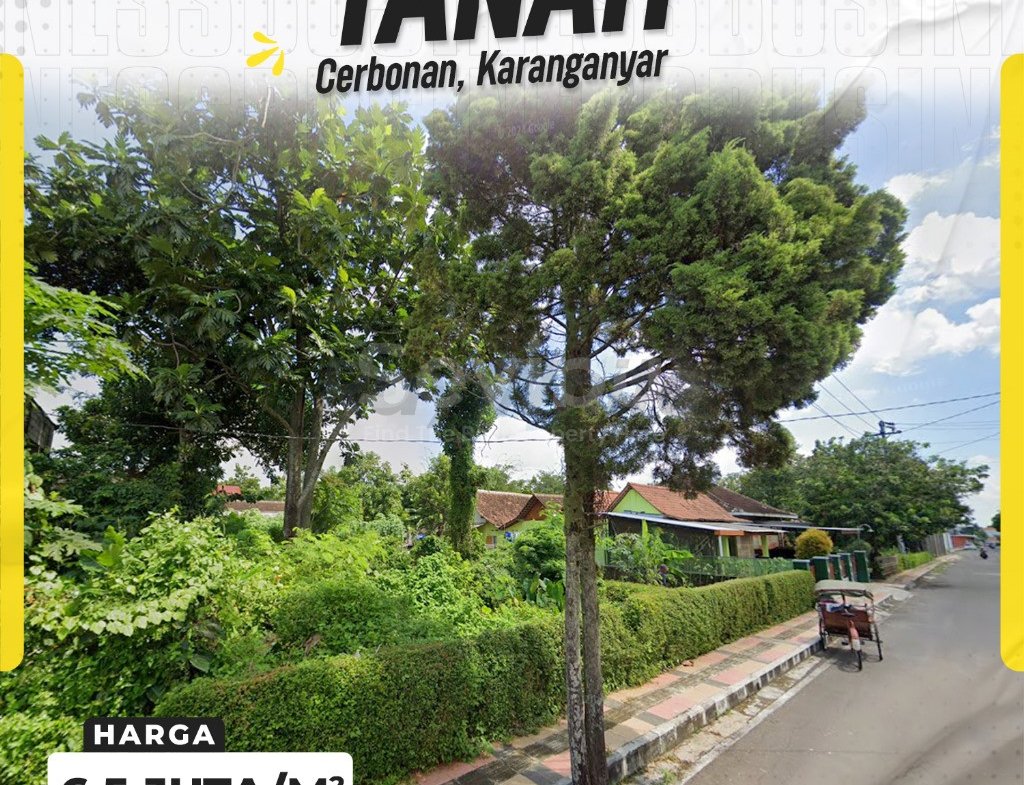 Sebuah kesempatan langka untuk memiliki tanah di alamat paling favorit di Karanganyar Kota. Dijual sebidang kavling pekarangan siap bangun seluas 208 m² di kawasan elit Cerbonan. Dengan lingkungan yang sangat tenang, asri, dan mapan, serta lebar depan ideal 10 meter, ini adalah lokasi yang sempurna untuk membangun hunian keluarga impian Anda di tengah kenyamanan pusat kota.