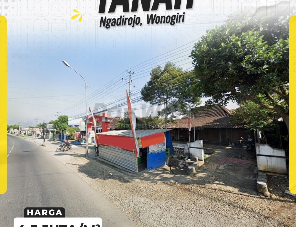 Peluang investasi properti komersial yang sangat langka di jantung pusat bisnis Ngadirojo, Wonogiri. Dijual sebidang tanah super strategis seluas 396 m² (plus bonus bangunan) dengan fasad yang sangat lebar, 18 meter. Berlokasi di nol jalan raya utama yang ramai, properti ini adalah platform ideal untuk membangun kompleks ruko, kantor cabang perbankan, supermarket, atau pusat kuliner.